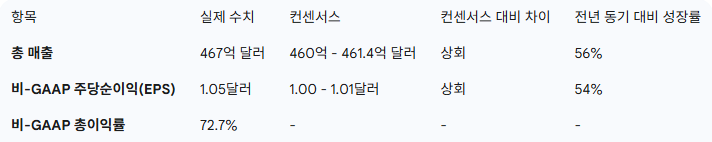 그러나 호실적 발표에도 불구하고 주가는 하락세를 보이며 시장의 복잡한 반응을 불러왔습니다. 이는 다음 분기 가이던스가 시장의 높은 기대치를 충족시키지 못했고, 미래 성장 모멘텀을 가늠하는 빌링스(Billings) 지표가 부진했기 때문으로 분석됩니다.