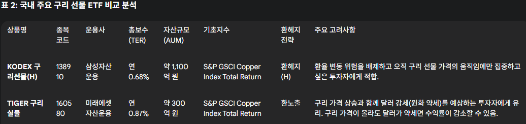 한국거래소(KRX)에 상장된 구리 관련 상품은 주로 미국 COMEX에 상장된 구리 선물을 추종하는 형태로, 투자자에게 비교적 손쉬운 접근성을 제공 합니다.