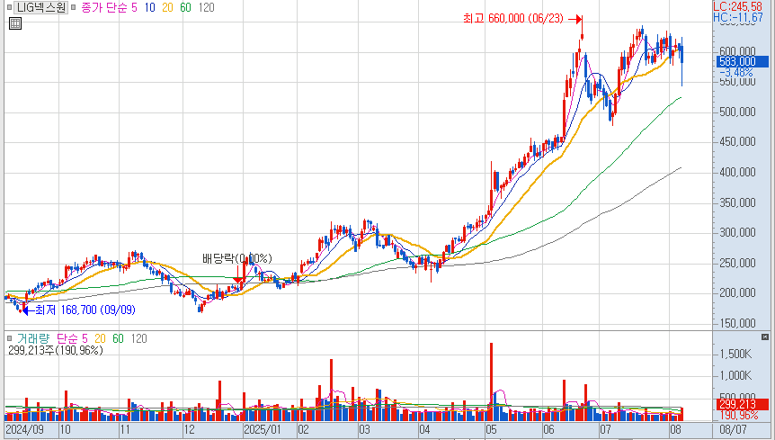 이러한 현상은 LIG넥스원이 단순히 매출 규모를 늘리는 것을 넘어, 고수익성 사업인 수출 부문의 비중을 확대하며 '질적 성장'을 이루고 있음을 의미합니다. 2분기 당기순이익이 영업이익보다 더 높은 증가율(120.3% vs 57.9%)을 보인 것도 이러한 수익성 개선 추이와 무관하지 않을 수 있습니다. 이는 장기적인 기업 가치 상승에 매우 긍정적인 신호로 해석될 수 있습니다.